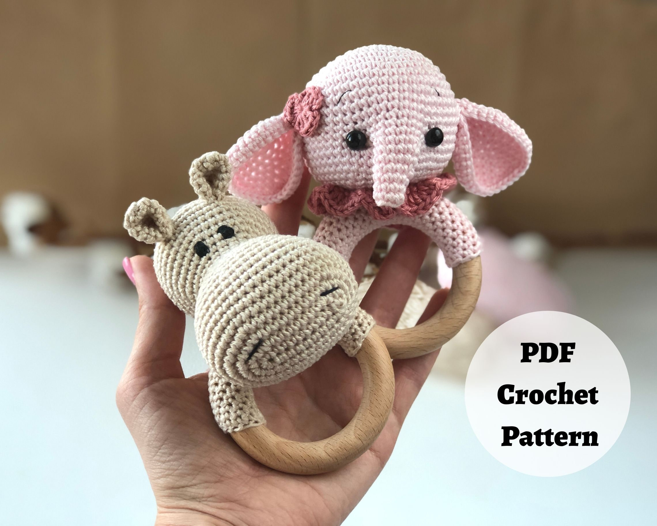3 In 1 Crochet Rattle Pattern Giraffe Elephant Hippo Etsy