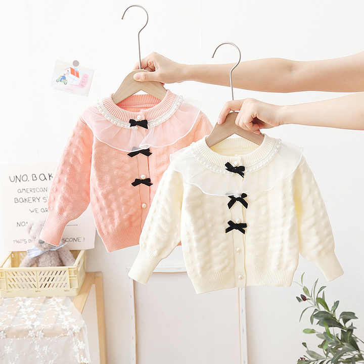 Sunny Baby Girls Solid Color Pearl Cardigan Long Sleeve Fashion Sweater Alibaba Com